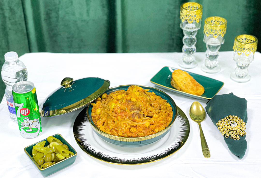Meatballs with chicken drumstick and gardenia, in addition to the puff Price 35LYD